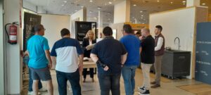 A lo largo del recorrido también se encontraron con stands y profesionales del Grupo Porcelanosa, donde pudieron ver las superficies de Gran Formato de XTONE y sus encimeras porcelánicas con sistema inductivo invisible, las novedades de L’ANTIC COLONIAL (como su lamina de piedra natural totalmente adaptable a las formas), lo último en superficies de KRION, los platos de ducha invisible de BUTECH, y las últimas novedades en baño de NOKEN.