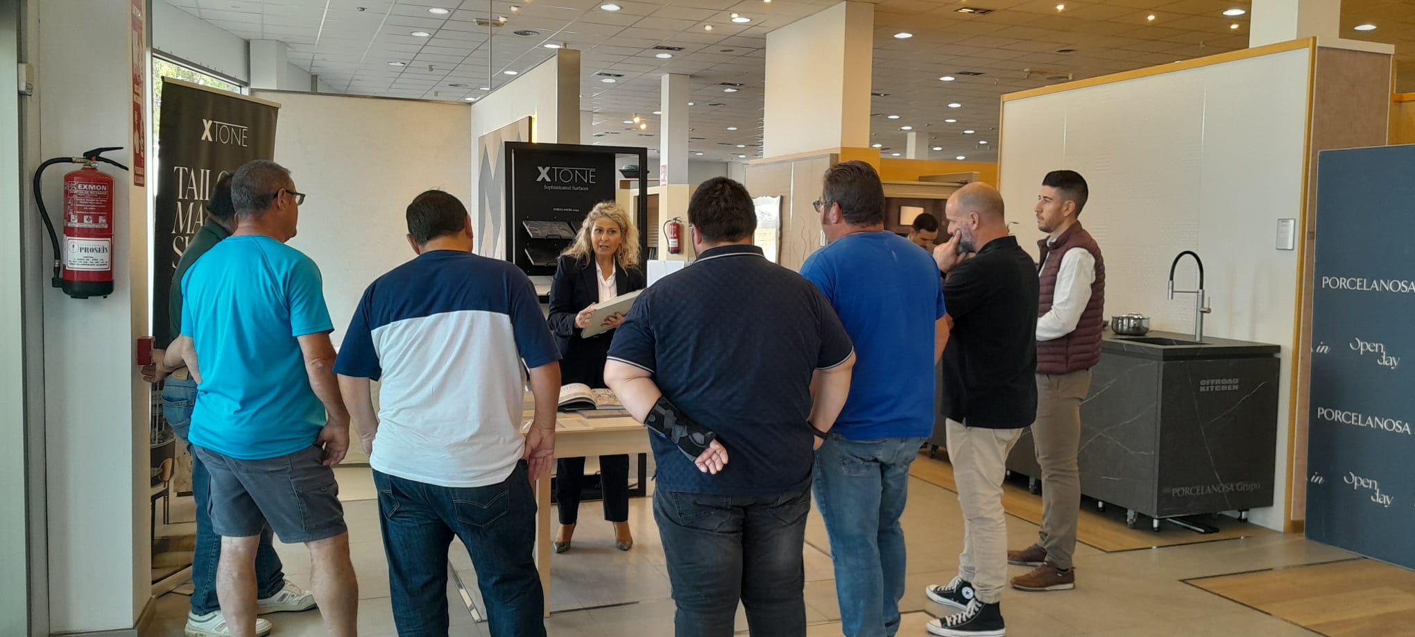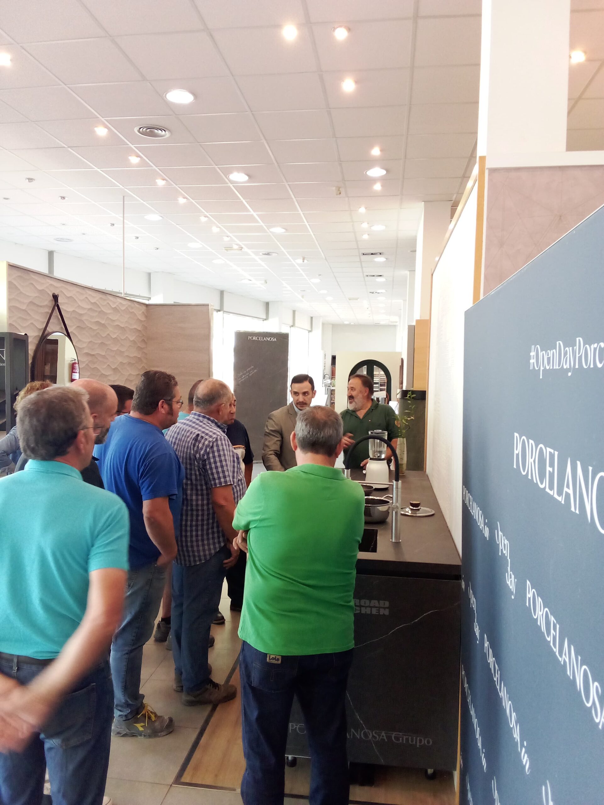 A lo largo del recorrido también se encontraron con stands y profesionales del Grupo Porcelanosa, donde pudieron ver las superficies de Gran Formato de XTONE y sus encimeras porcelánicas con sistema inductivo invisible, las novedades de L’ANTIC COLONIAL (como su lamina de piedra natural totalmente adaptable a las formas), lo último en superficies de KRION, los platos de ducha invisible de BUTECH, y las últimas novedades en baño de NOKEN.